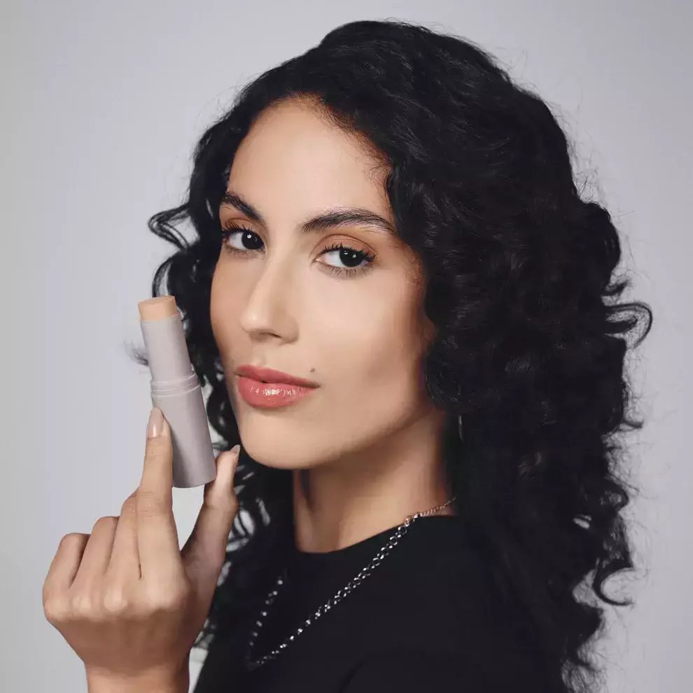 Com a pele limpa e hidratada, deslize o bastão diretamente nas áreas que deseja corrigir ou uniformizar, como testa, bochechas e queixo. Use um pincel, esponja ou os dedos para espalhar e esfumar, criando um visual impecável e natural.