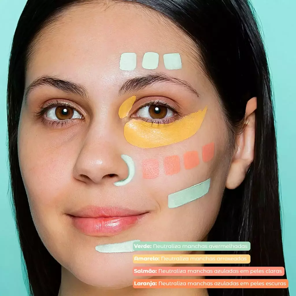 Verde: para neutralizar manchas avermelhadas, como espinhas ou rosáceas em peles claras.